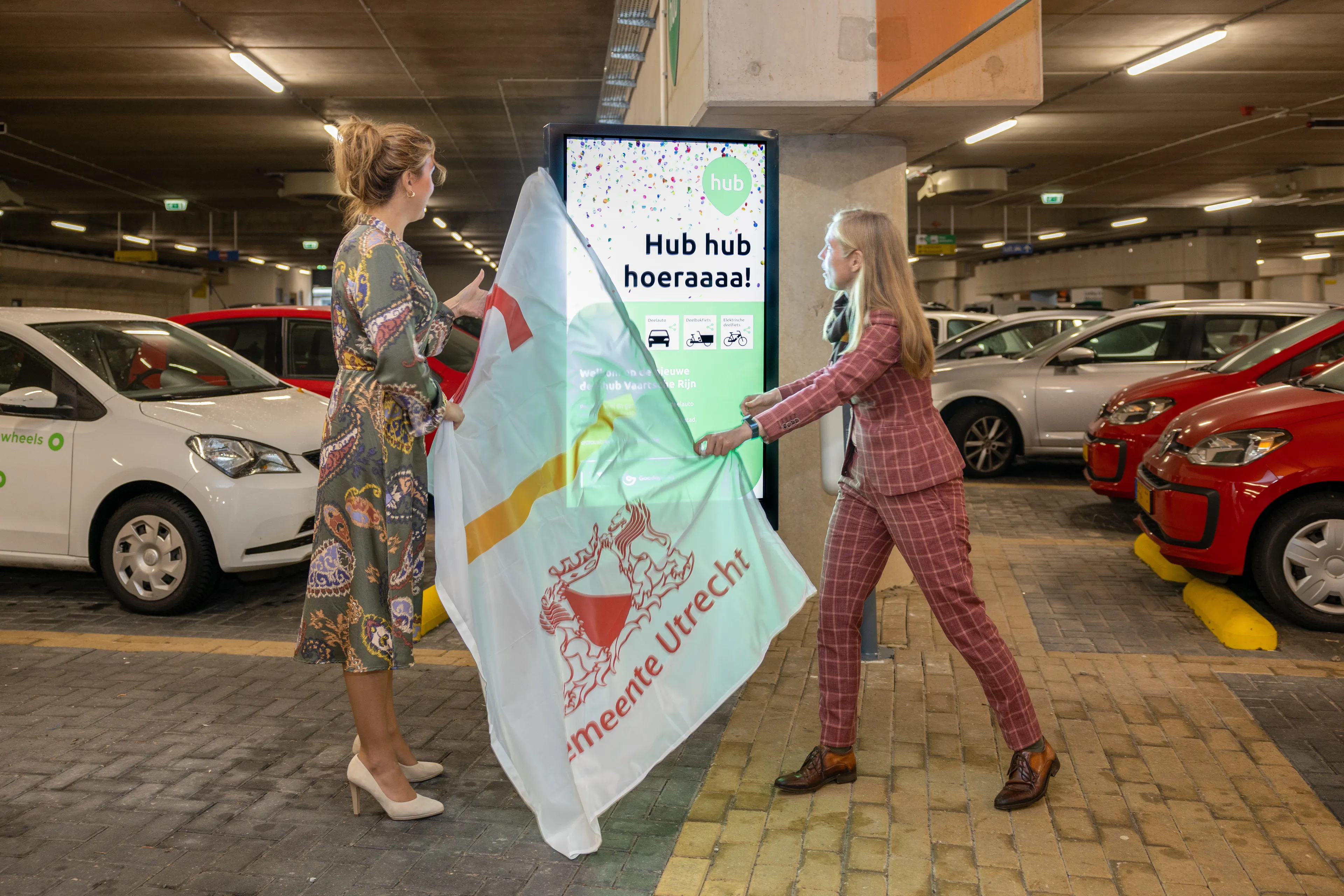 Na het uitwisselen van ervaringen ging het gezelschap naar NS-station Vaartsche Rijn om daar de eerste officiële deelmobiliteitshub met landelijke identiteit te openen. Vanaf nu een plek waar bewoners en bezoekers makkelijk en snel op een elektrische deel(bak)fiets of deelauto kunnen op- en overstappen.